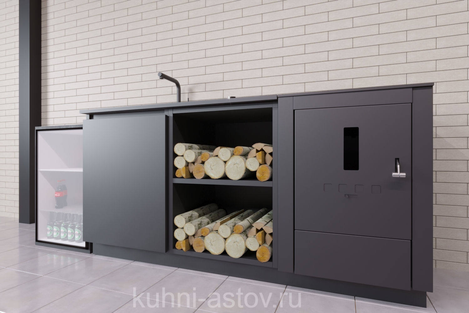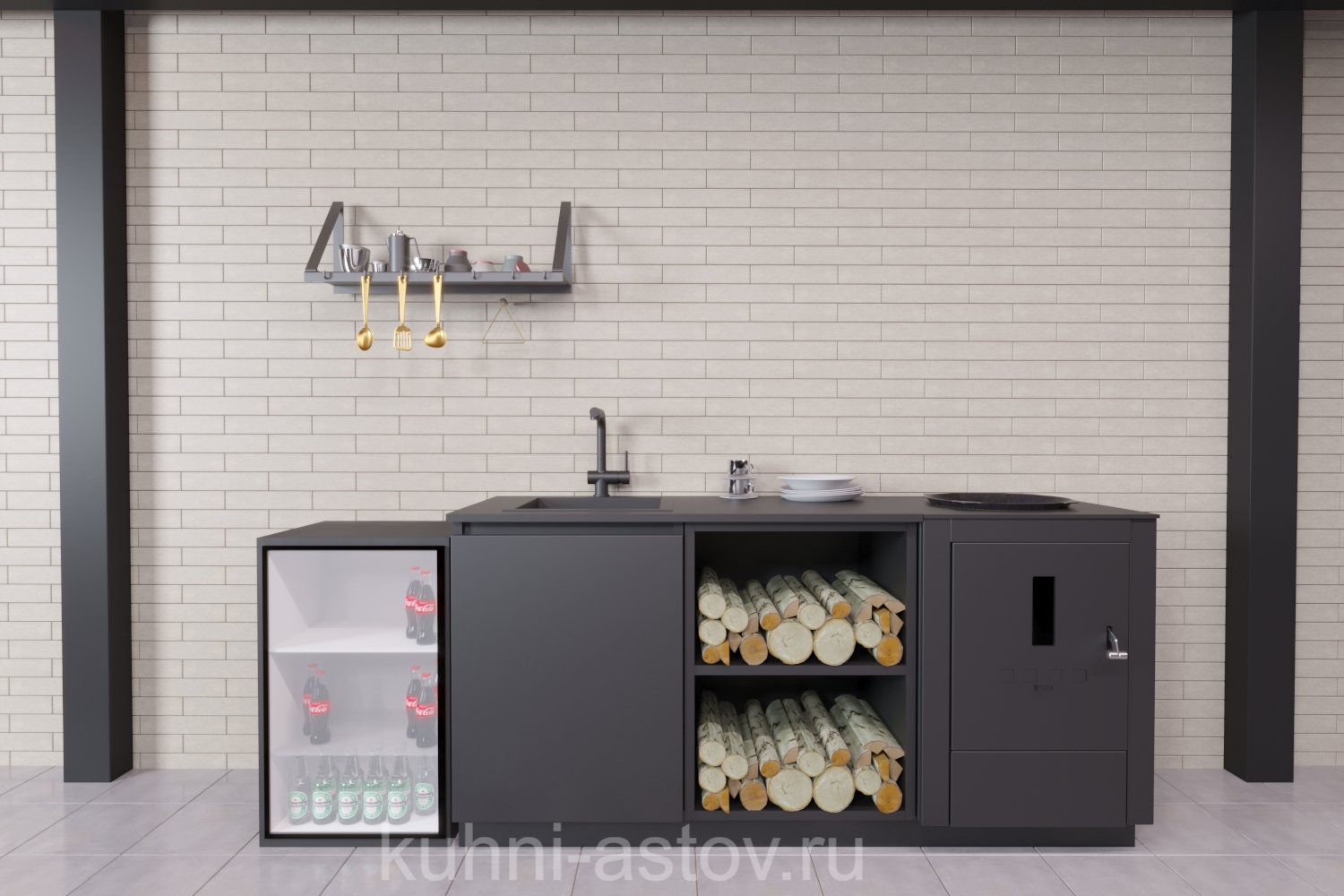 Компактность, позволяющая экономить пространство, и приемлемая цена барбекю комплекса ASTOV №6 делают выбор этой композиции наиболее оптимальным решением при оборудовании собственного домашнего фудкорта. Корпус тумб и фасады окрашены порошковой краской цвета RAL9005, печь под казан покрыта специальной термостойкой эмалью. Столешницу и мойку со смесителем необходимо выбрать на свой вкус, а так же эту композицию можно дополнить любыми модулями из нашего каталога. Этот набор не включает вытяжной зонт, так как планировался на улицу под навес, но при использовании этой кухни в помещении – зонт нужен и он доступен для заказа. Дополните кухню угольным мангалом — ваш уголок будет смотреться как стопроцентная мангальная зона из металла с разнообразным функционалом. Корпус и фасады выполнены из оцинкованной стали толщиной 1 мм. Фасады двухконтурные. Корпус, фасады, вытяжной зонт покрашен порошковой краской в 2 слоя, цвет: RAL9005. В комплектацию кухни Астов №6 вытяжной зонт не входит. Его можно заказать отдельно. Дополнительно можно установить: — Угольный гриль. — Столешницу. — Мойку и смеситель.