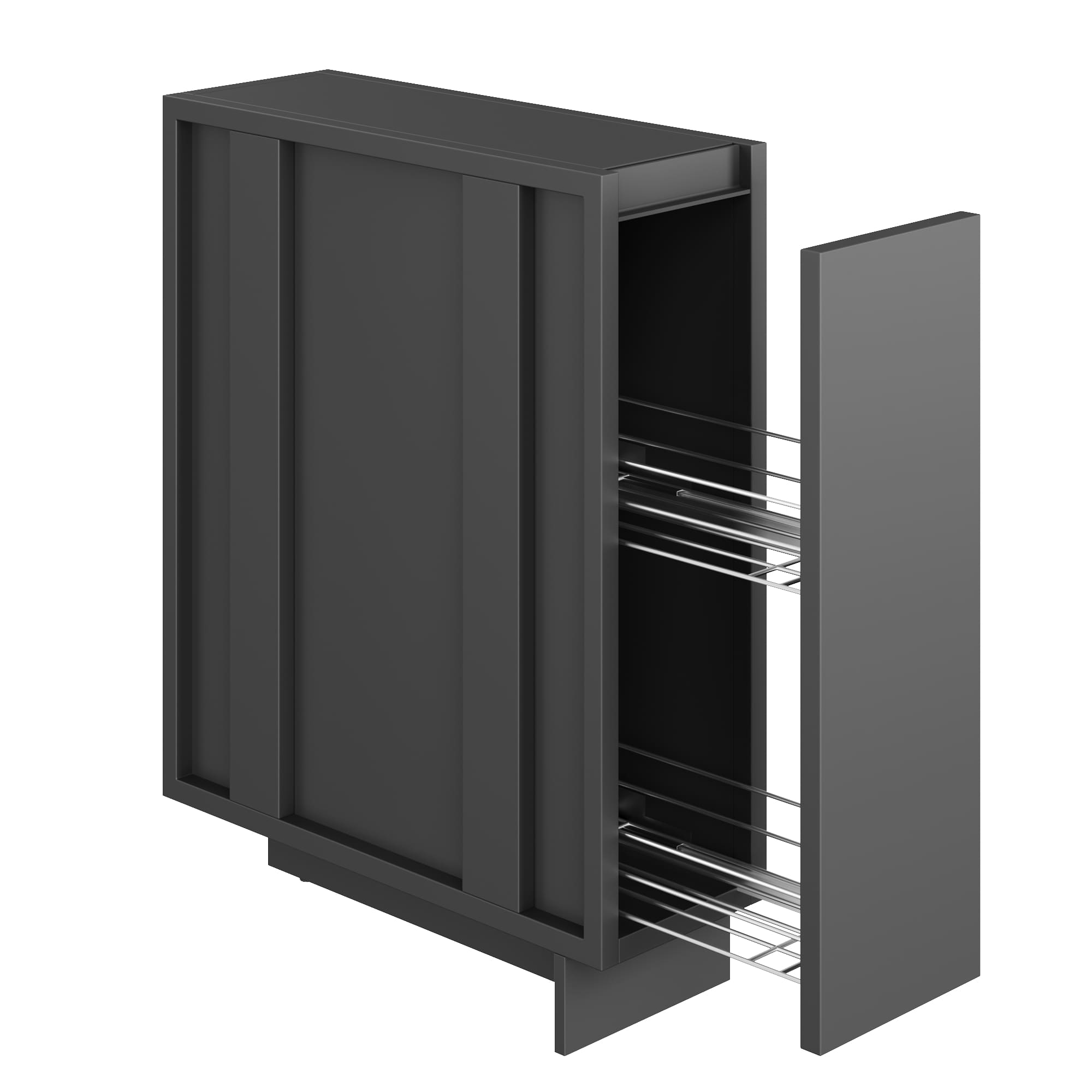 Количество направляющих (BLUM, Австрия) с доводчиком – 1 пара. Толщина фасада: — из металла и нержавеющей стали 25 мм (двухконтурный) — из керамогранита (в алюминиевом профиле) 20 мм. Толщина боковых и задних стенок 25 мм. Регулируемые ножки. Модуль разработан под толщину столешницы 20 мм. Материал корпуса может быть выполнен из нержавеющей стали. Материал фасада может быть выполнен из: — Нержавеющей стали; — Керамогранита (в алюминиевом профиле); — HPL (в алюминиевом профиле).