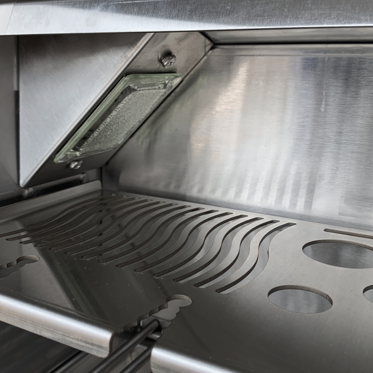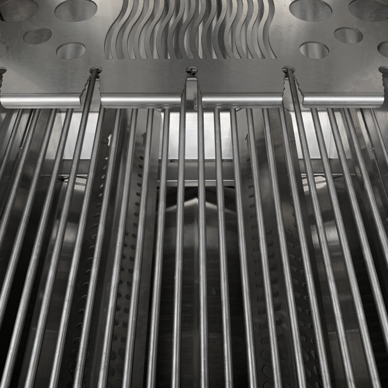 Крышка гриля состоит из боковых стенок, и корпуса, изготовленного из нержавеющей стали. С фронтальной стороны расположена большая ручка. Корпус с панелями из нержавеющей стали. Корпус, собранный на стальном каркасе с панелями. 2 экономичных, высокопроизводительных горелки с максимальной тепловой мощностью по 4 кВт каждая. Массивная нержавеющая решетка для гриля. Над горелками размещается особая перфорированная пластина обеспечивающая равномерное распределение температуры под основной решеткой. Помимо своей основной функции, хорошо защищает горелки и предотвращает возгорание жира. При этом соки и жир, попадающие на раскаленные пластины испаряются, что придает продукту настоящий аромат барбекю. Основная рабочая решетка из нержавеющей стали. Сверхнадежная пьезоэлектрическая система зажигания, не требующая дополнительного питания и электронных компонентов, установленная индивидуально для каждой горелки. Поджиг газа происходит при повороте ручки регулятора соответствующей горелки. Сделано в России. Базовая комплектация: 1. Литые горелки — 2 шт 2. Ручки управления металлические с пьезоподжигом — 2 шт 3. Термометр — 1 шт 4. Решётка нижняя — 2 шт 5. Съёмный поддон для сбора жира — 1 шт 6. Гибкий сильфон для подвода газа — 1 шт 7. Редуктор газовый с клапаном безопасности — 1 шт 8. Многофункциональная гриль полка — 1 шт 9. Вертел — 1 шт 10. Подсветка — 2 шт