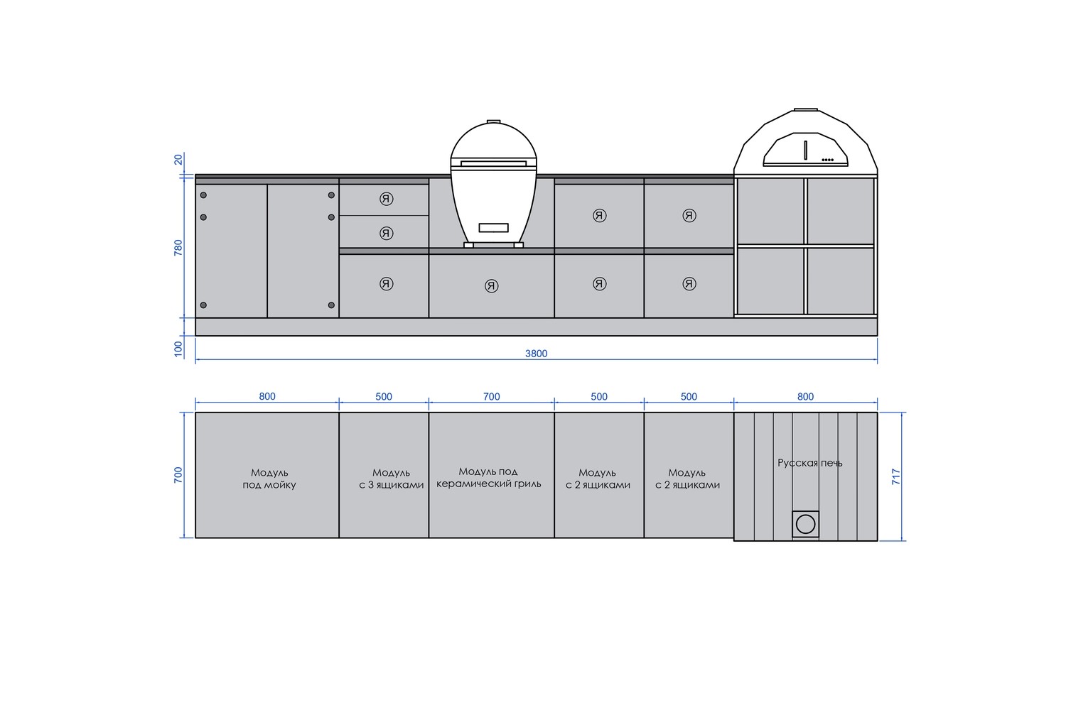 Кухня Astov BBQ № 14 (ширина 3800 мм)