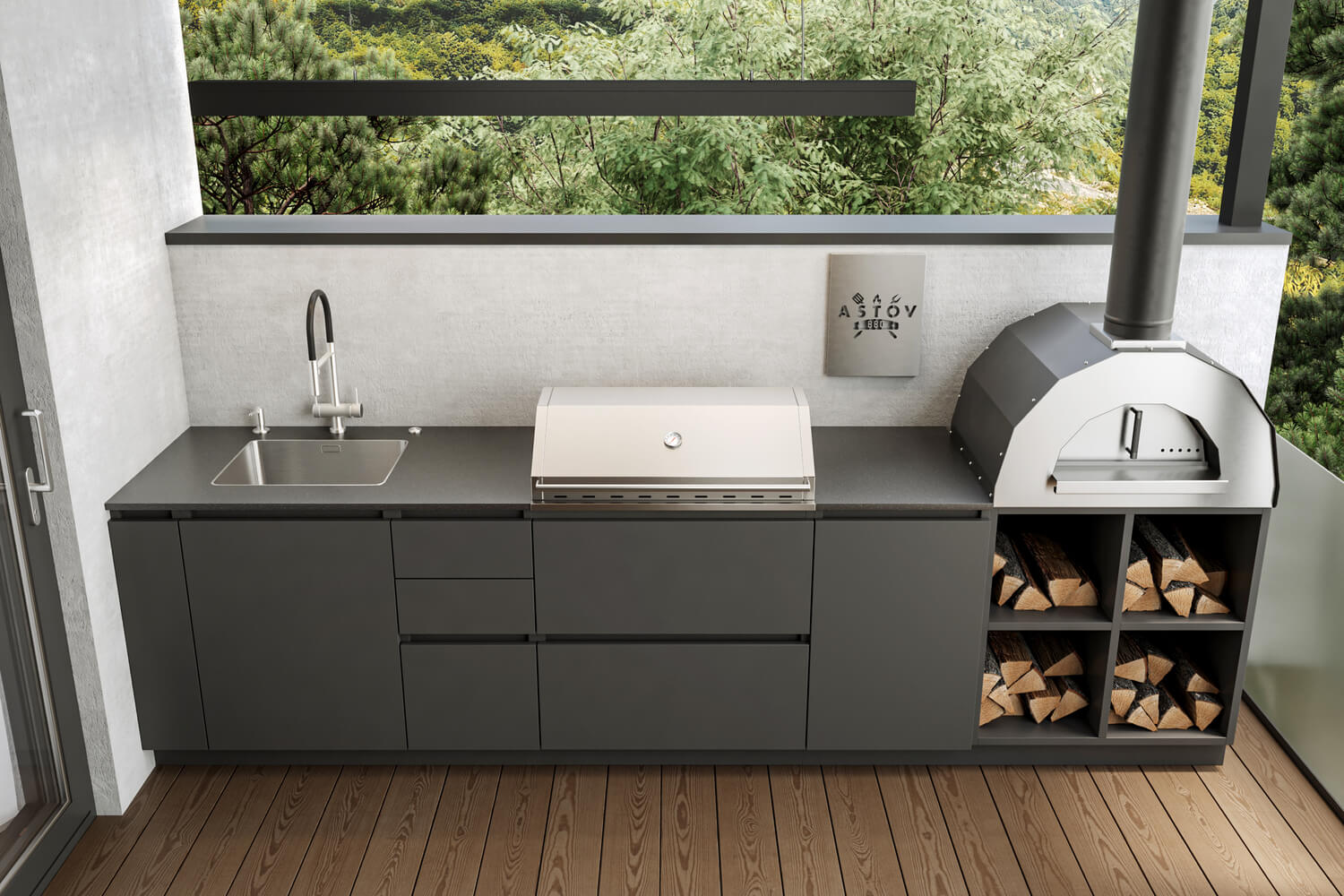 Мангальная зона Astov BBQ — это отличное место для отдыха и вкусной еды. Здесь стоит угольный гриль, который помогает быстро приготовить мясо и овощи. Русская печь добавляет особый вкус, и в ней можно запекать хлеб, готовить супы, пиццу, пироги, мясо с овощами. Пользоваться этой зоной очень удобно, так как всё необходимое находится под рукой. Можно собираться с друзьями и семьёй, наслаждаясь вкусной едой и приятной атмосферой.