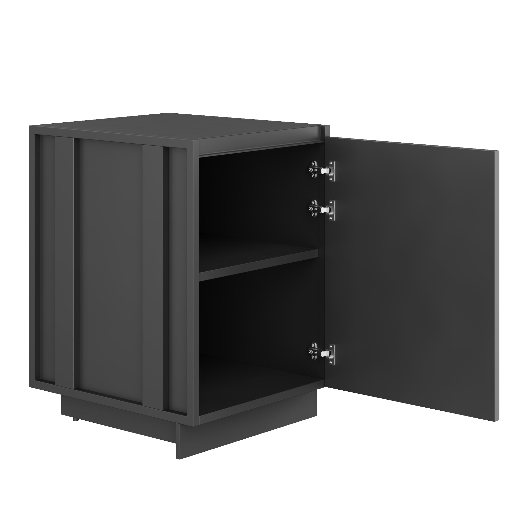 Количество полок – 1 шт. Высота полки – 352 мм. Количество петель (BLUM, Австрия) с доводчиком – 3 шт. (левое или правое расположение) Толщина фасада: — из металла и нержавеющей стали 25 мм (двухконтурный) — из керамогранита (в алюминиевом профиле) 20 мм. Толщина боковых и задних стенок 25 мм. Регулируемые ножки. Модуль разработан под толщину столешницы 20 мм. Материал корпуса может быть выполнен из нержавеющей стали. Материал фасада может быть выполнен из: — Нержавеющей стали; — Керамогранита (в алюминиевом профиле); — HPL (в алюминиевом профиле).