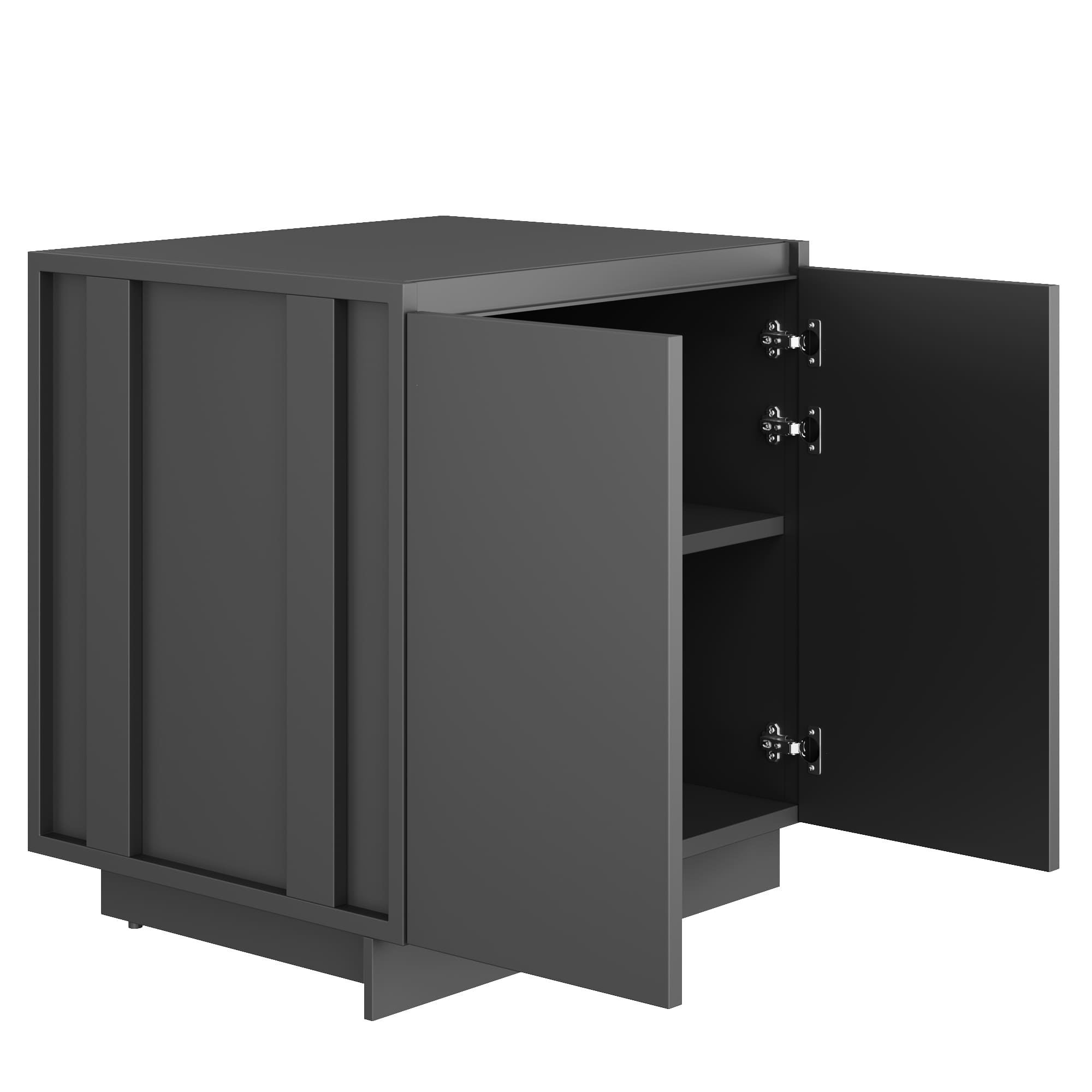 Высота полки – 352 мм. Количество петель (BLUM, Австрия) с доводчиком – 6 шт. (левое или правое расположение) Толщина фасада: — из металла и нержавеющей стали 25 мм (двухконтурный) — из керамогранита (в алюминиевом профиле) 20 мм. Толщина боковых и задних стенок 25 мм. Регулируемые ножки. Модуль разработан под толщину столешницы 20 мм. Материал корпуса может быть выполнен из нержавеющей стали. Материал фасада может быть выполнен из: — Нержавеющей стали; — Керамогранита (в алюминиевом профиле); — HPL (в алюминиевом профиле).