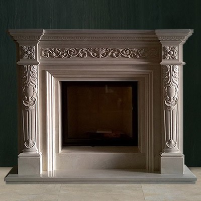 Портал совместим с топками ПС7363. Материал по каталогу — Crema Marfil. Этот элегантный классический портал может быть изготовлен из мрамора Emperador Dark, Calisia Capri, Travertine Light, Sunny Dark.