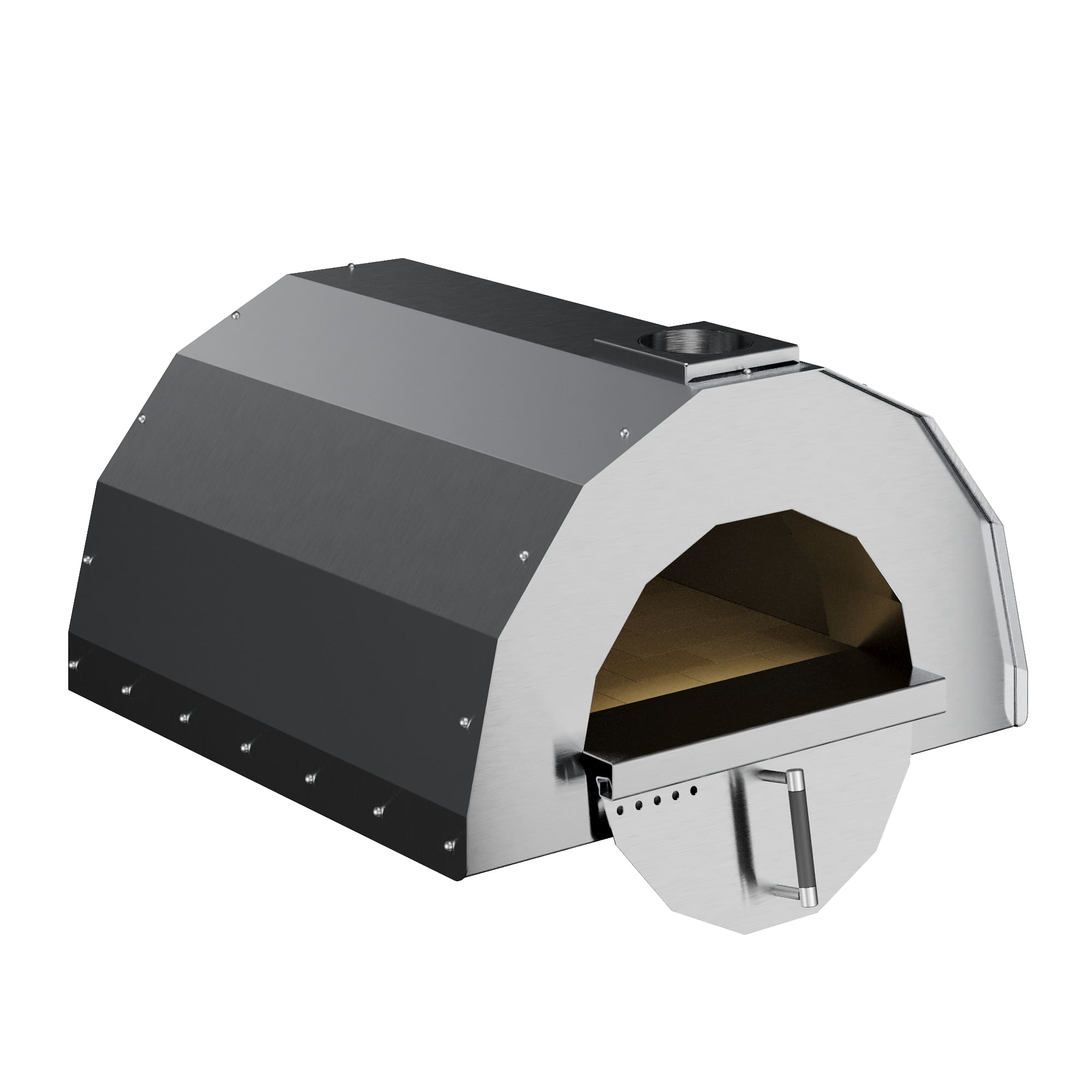 Размеры отверстия в размере 1000 мм – 670х300 мм. Диаметр отверстия под дымоход – 150 мм. Подовая часть выполнена из шамотного кирпича, в двойных стенках засыпана шамотная крошка. Крышка (входит в комплект) из нержавеющей стали. Ручка выполнена из нержавеющей стали и фторопласта. Открывать и закрывать крышку рекомендуется в теплоизоляционных перчатках. Пиццерию можно заказать с дровником (не входит в комплект) Рекомендуемый вес закладки сухих дров 3-5 кг. Дрова использовать только лиственных пород дерева!