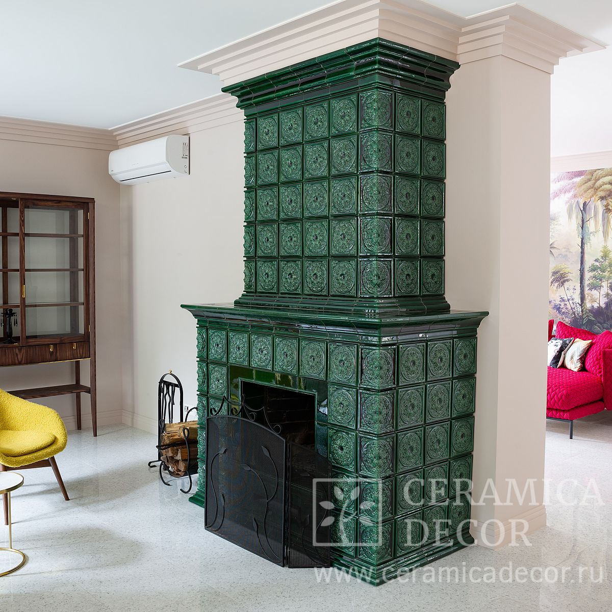 Облицовка Дорф представляет собой эксклюзивный комплект керамических изразцов и плитки, созданный специально для декоративной отделки каминов. Продукция относится к премиальному сегменту, так как каждый элемент изготавливается полностью вручную: от формовки шамотной глины до художественной росписи. Облицовка отличается превосходными эксплуатационными характеристиками, включая стойкость к экстремальным температурам (от -50 до +300 градусов), влагостойкость и защиту от механических повреждений. Процесс монтажа максимально упрощен и напоминает укладку обычной плитки на термостойкий клей, при этом производитель предлагает гибкие возможности кастомизации: подгонку под индивидуальные габариты печи, а также изменение цвета глазури или стиля росписи по желанию заказчика.
